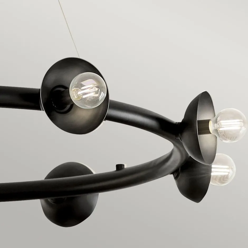 Runder Kronleuchter aus Metall in Schwarz für Wohnzimmer und Esszimmer