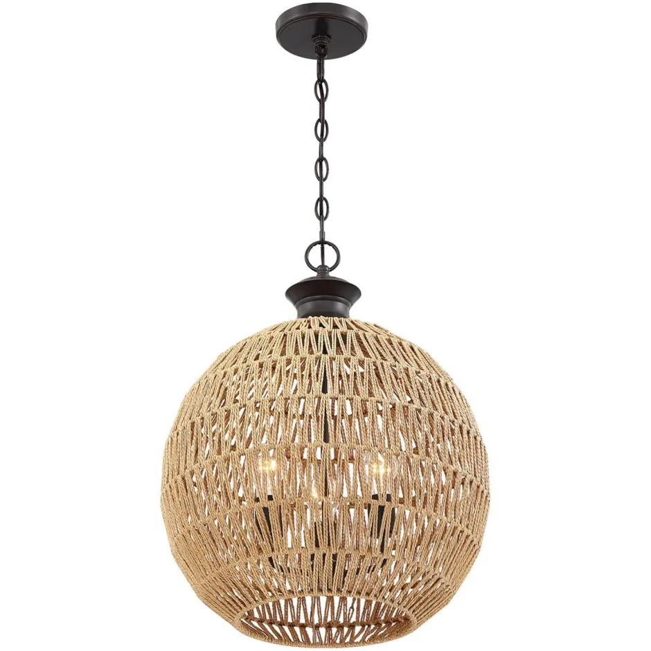 Runde Pendelleuchte mit geflochtenem Korb Lampenschirm aus Seil