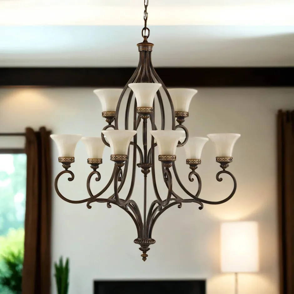 Rustikaler Kronleuchter mit Schirm in elegantem Braun für Wohnzimmer, Salon und Galerie
