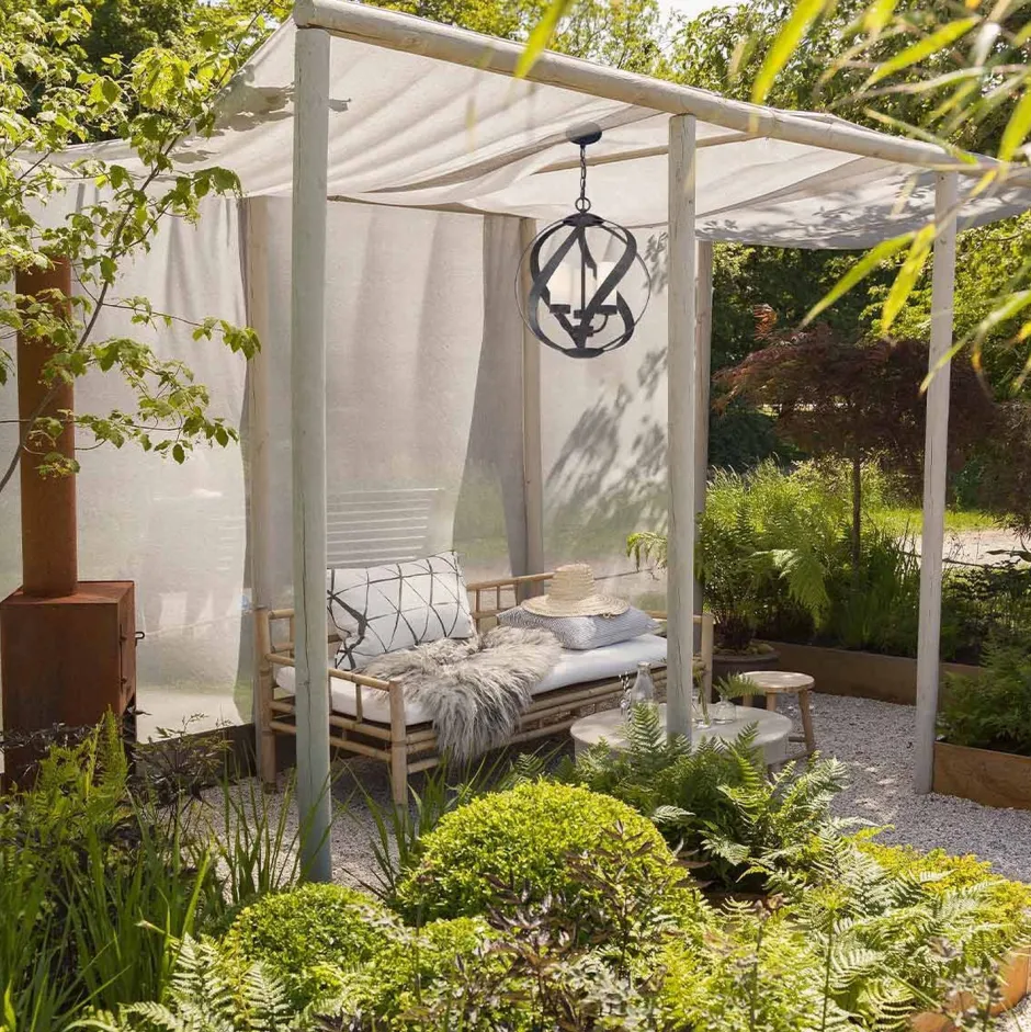 Der äußere Kugelschirm macht die außen Pendelleuchte dank der antiken Farbe und des offenen Designs zu einem besonders dekorativen Akzent für Terrasse, Veranda, Eingang und Balkon