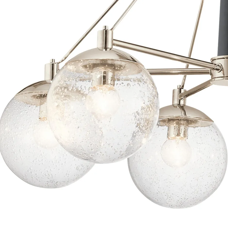 Der Kugelschirm sorgt für eine großzügige Beleuchtung und erhellt Wohnzimmer, Küche und Esszimmer