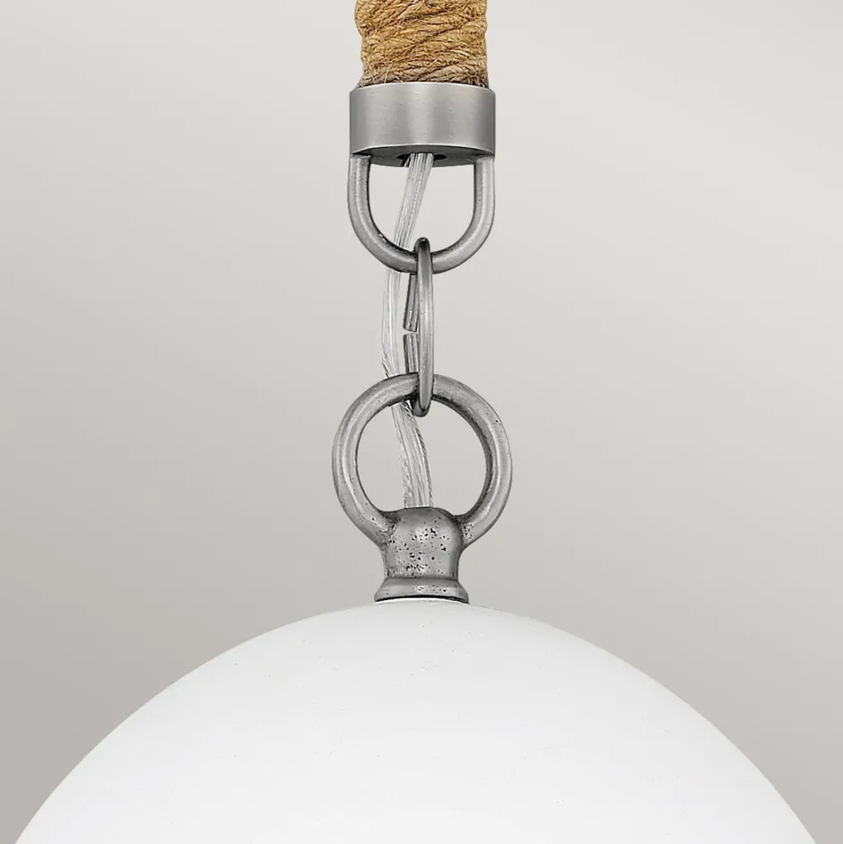 Schmale Pendelleuchte mit Keramik Lampenschirm und Jute Seil