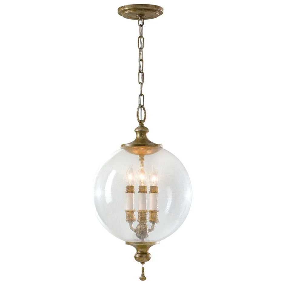 Premium Kugel Pendelleuchte in Blattsilber antik