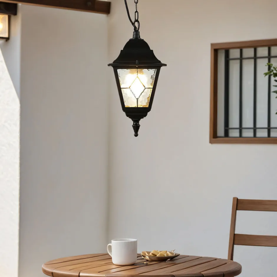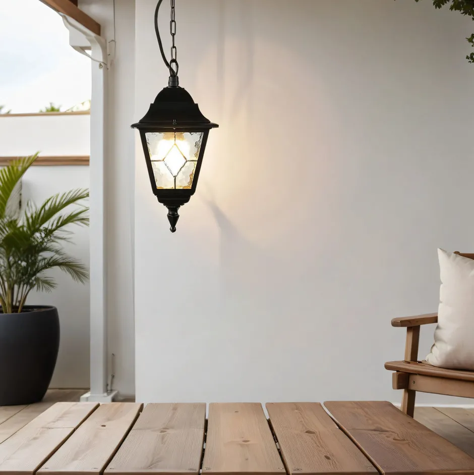 Das Design ist einer klassischen Laterne aus Schmiedeeisen nachempfunden und passt ideal in den Eingangsbereich, Balkon oder Terrasse