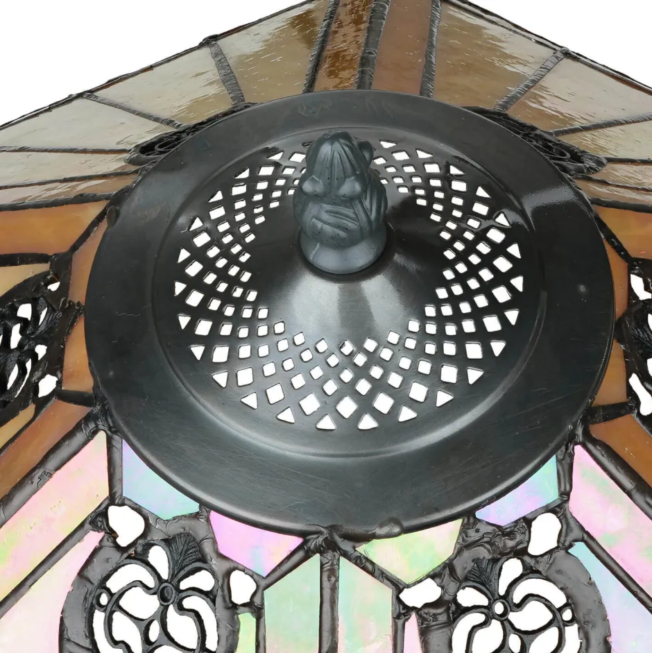 Der Lampenschirm besteht aus 120 filigranen Glasstücken, die zusammen ein klassisches Art Nouveau Muster ergeben