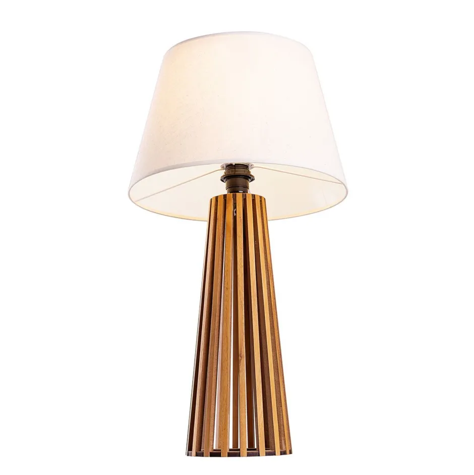 Das pflegeleichte und robuste Material mit seiner natürlichen Maserung und Farbe verleiht der Tischleuchte einen wohnlichen Charakter, der sich leicht mit vielen Einrichtungsstilen kombinieren lässt