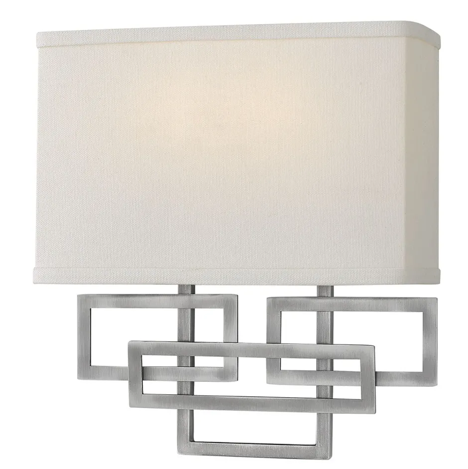 Design Wandlampe in Nickel antik mit hellem Schirm aus Leinen