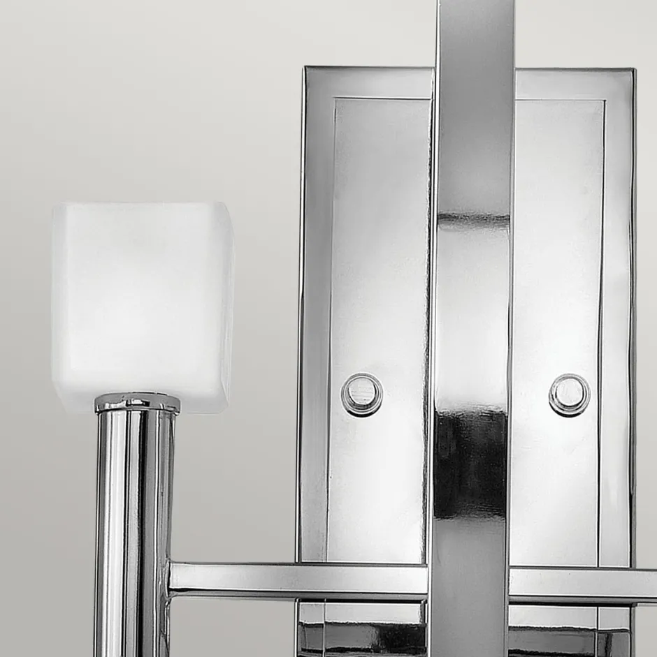 Die eckigen Schirme aus satiniertem Glas sorgen für eine blendarme Lichtstreuung, was ein angenehmes Ambiente erlaubt