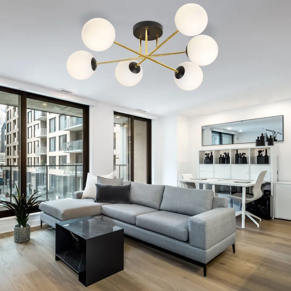 Die Kugelschirme erlauben eine blendarme Lichtstreuung – ideal in Wohnzimmer und Esszimmer
