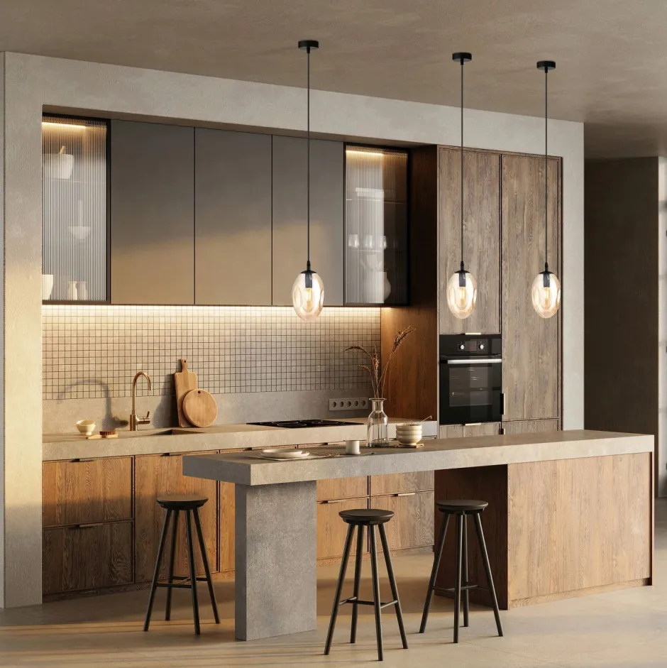 Dekorative Pendelleuchte mit extravagantem Rauchglas Lampenschirm