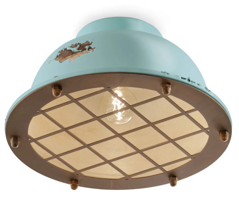 Die antik wirkende Oberfläche in Kombination mit dem hellen Blau verleiht der Deckenleuchte einen einzigartigen Look, der in jedem Raum zu einem dekorativen Blickfang wird