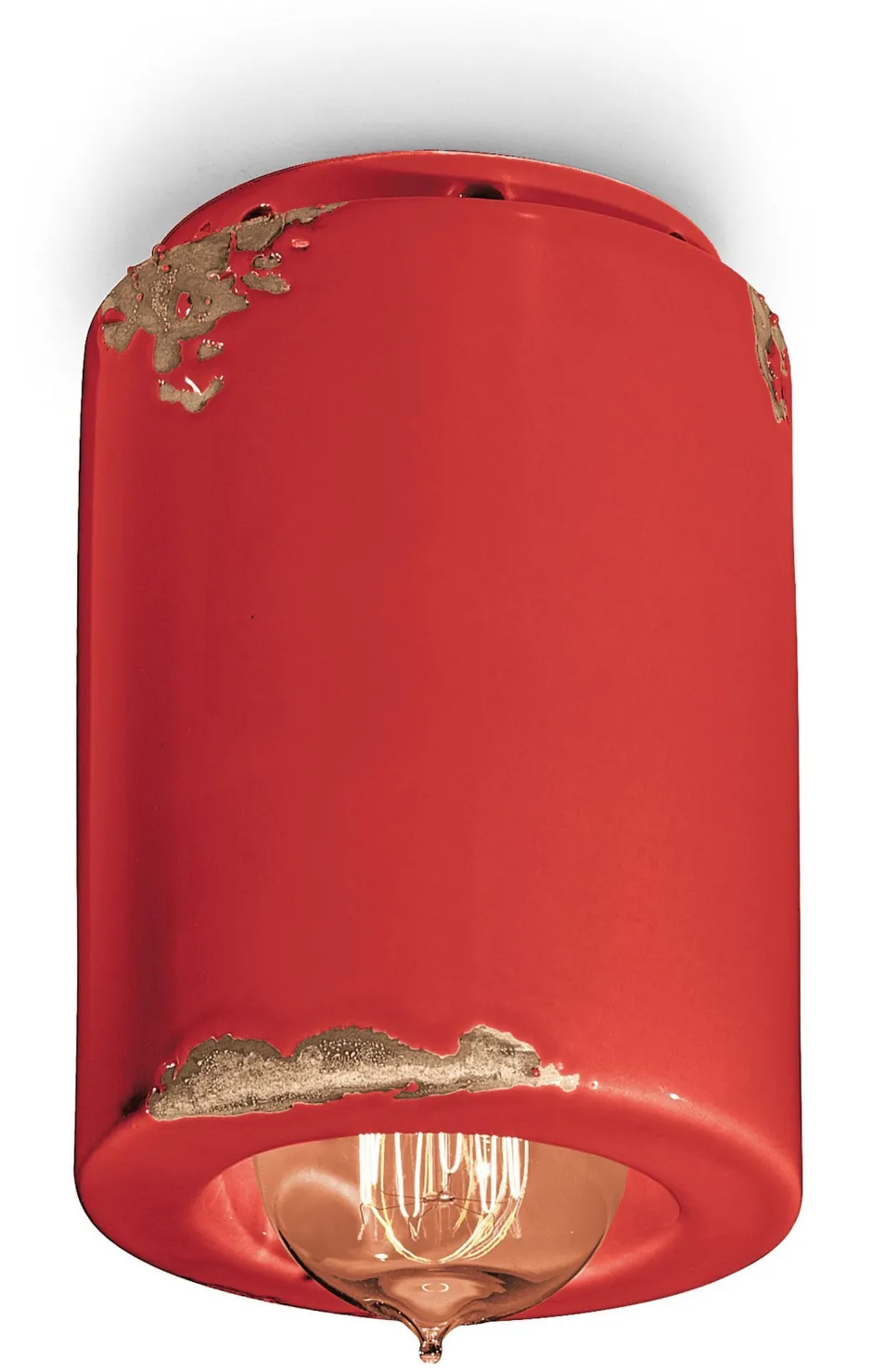 Runder Aufputz Deckenspot aus massiver Keramik in warmem Rot