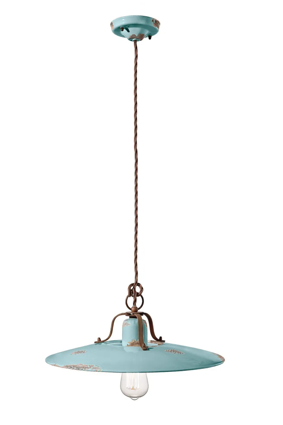 Kleine Pendelleuchte aus Keramik und Metall in hellem Blau