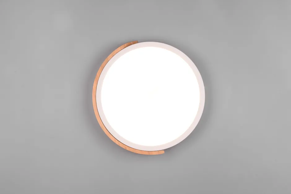 Skandinavische LED Deckenleuchte aus Holz und Kunststoff in Weiß