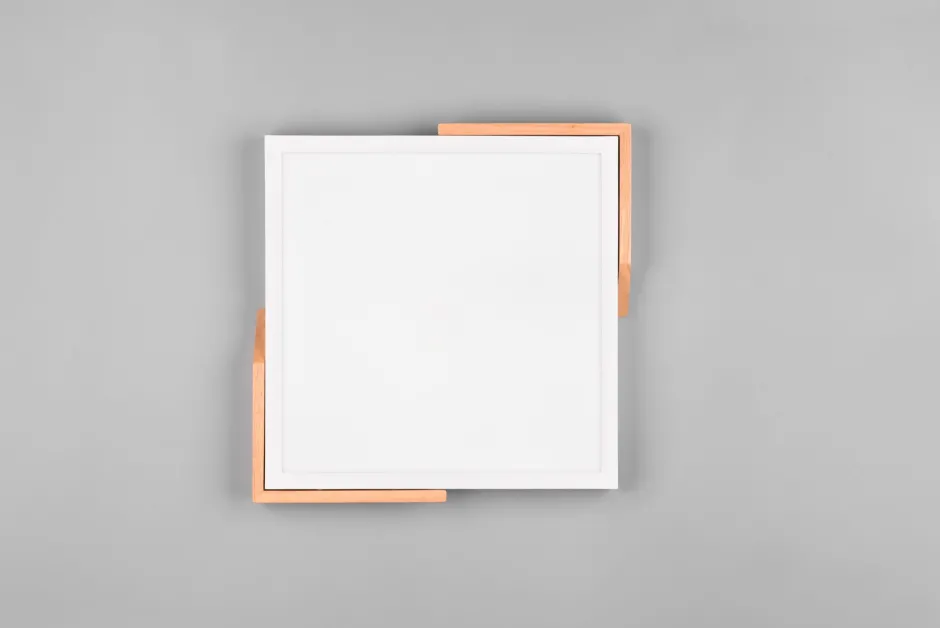 Skandinavische LED Deckenleuchte aus Kunststoff und Holz in Weiß