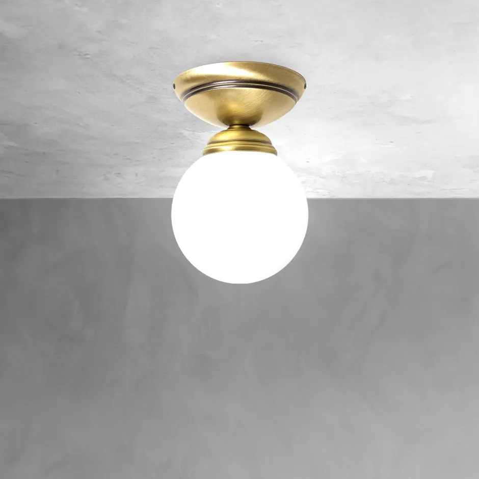 Runde Deckenleuchte aus massivem Messing und Glas