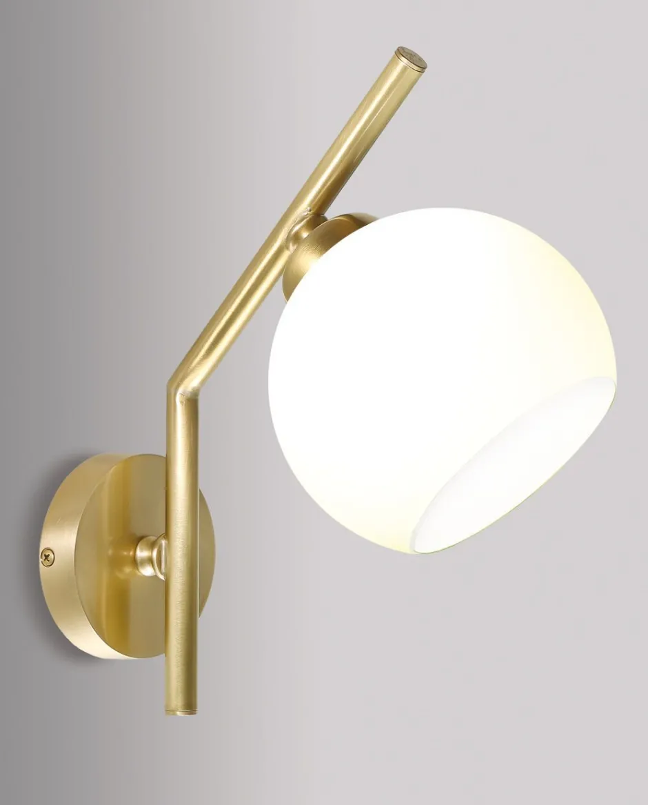 Elegante Wandleuchte aus massivem Messing mit satiniertem Glasschirm