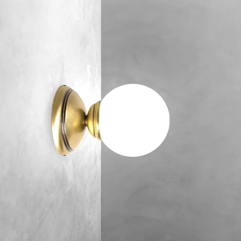 Runde Wandleuchte aus massivem Messing und Glas