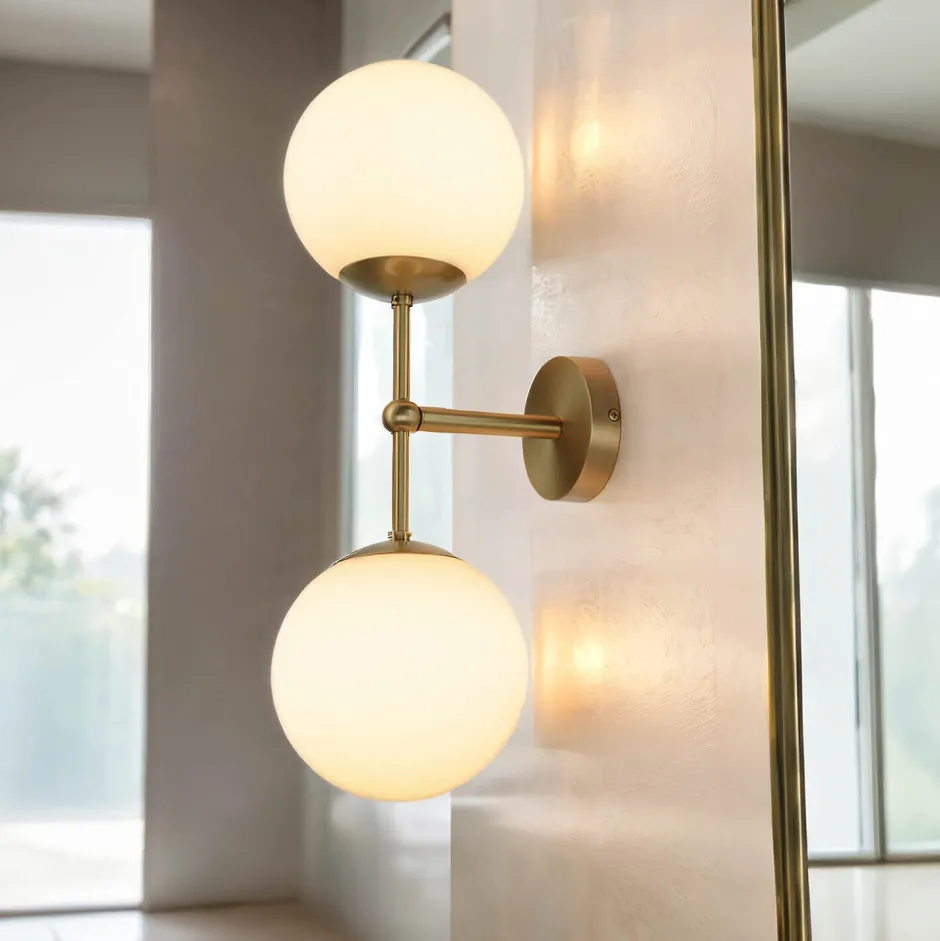 Elegante Wandleuchte aus massivem Messing mit Glas Kugel Schirm
