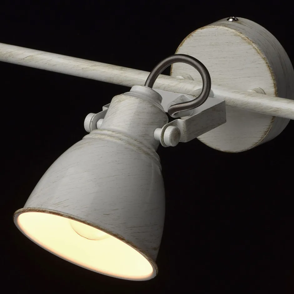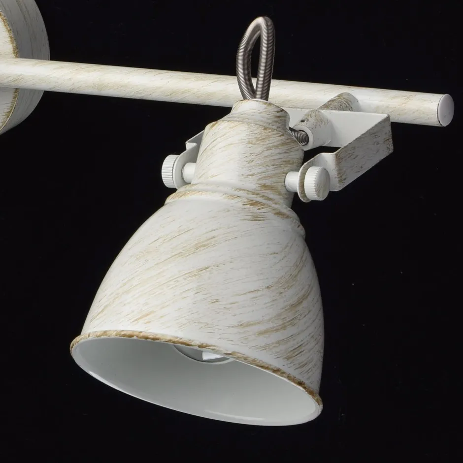 Das Shabby Weiß mit goldener Patina ergänzt das Industrial Design perfekt und lässt die Leuchte überall zu einem dekorativen Highlight werden.