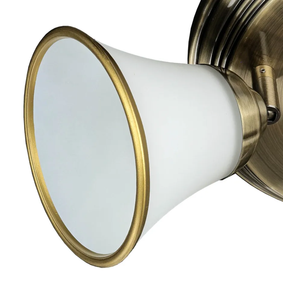 Die dreh- und schwenkbaren Lampenschirme aus satiniertem Glas erlauben eine zielgerichtete Beleuchtung