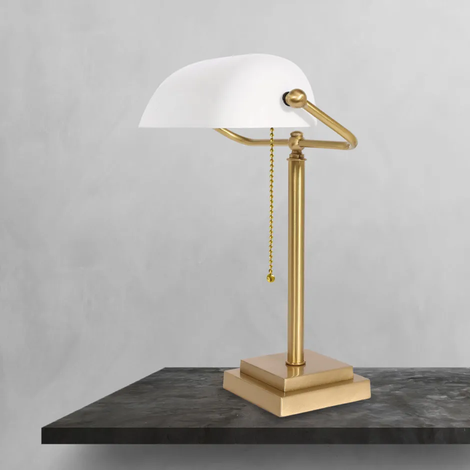 Edle Bankerlampe mit Zugschalter aus massivem Messing und Glas