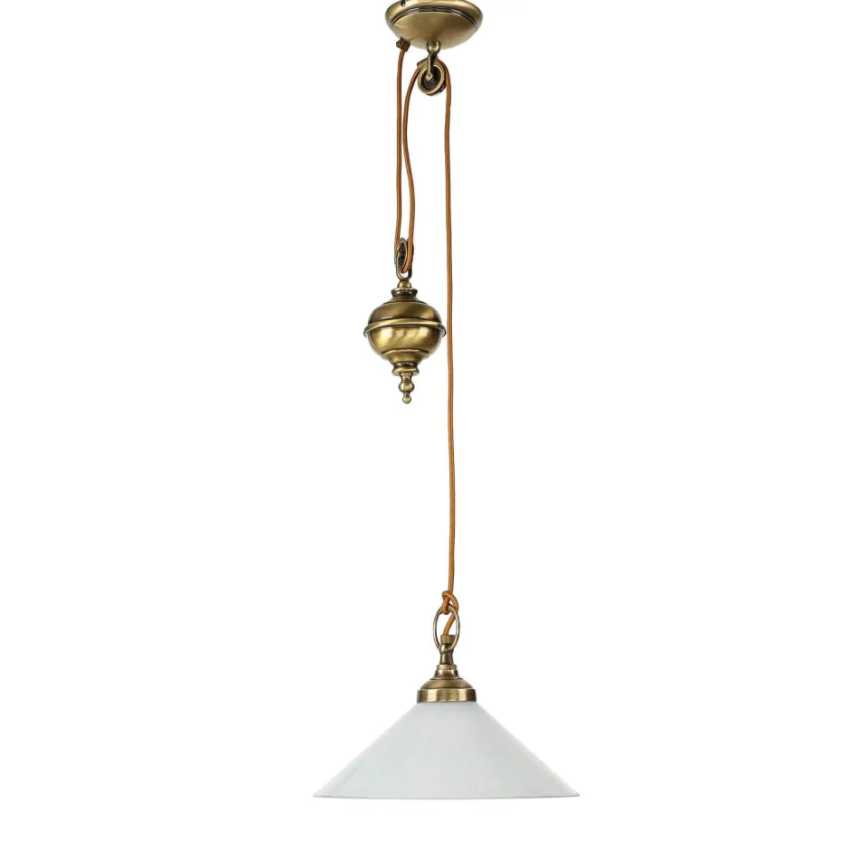 Höhenverstellbar dank Umlenkrolle und Gegengewicht – ideal über dem Esstisch und Küchentisch