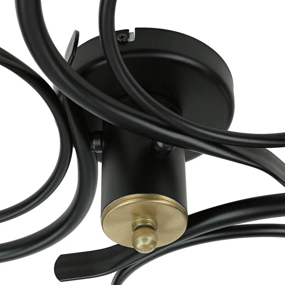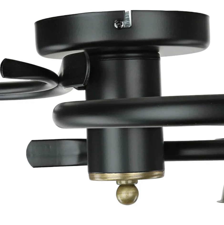 Landhaus Deckenleuchte aus Stahl und Glas in Schwarz, Weiß und Antik Messing