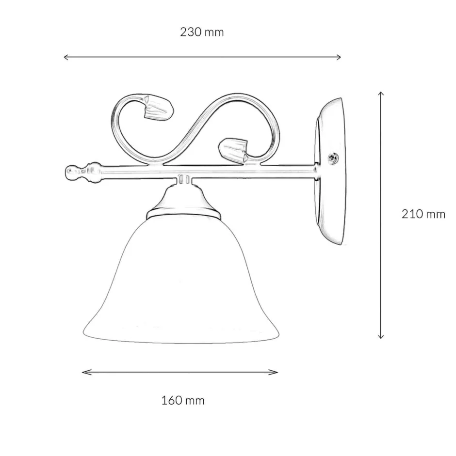 Das schwarze Metall erinnert an massives Schmiedeeisen, was den antiken Look der Wandleuchte weiter betont