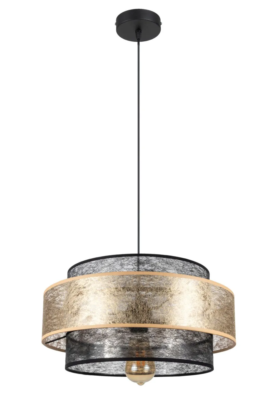 Moderne Hängelampe aus Metall und Stoff in Schwarz und Gold