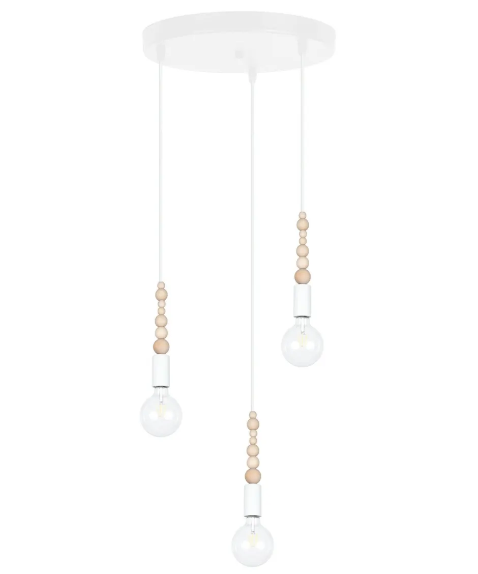 Qualität Made in EU Entdecke die charmante Retro Hängelampe TRUILI, die mit ihrem einzigartigen Design aus Metall und Holz in Weiß jeden Raum zum Strahlen bringt. Mit einer Länge von 900 mm, einer Höhe von 300 mm und einem Durchmesser von 300 mm ist diese Pendelleuchte sowohl für hohe als auch für niedrigere Decken ideal geeignet. Die dekorative Optik, die durch kleine Holzkügelchen ergänzt wird, sorgt für einen stilvollen Akzent in deinem Wohnzimmer oder Esszimmer. Die TRUILI Hängelampe ist nicht nur ein echter Blickfang, sondern auch äußerst funktional. Sie benötigt drei E27 Leuchtmittel mit einer maximalen Leistung von 60W, die den Look der Lampe individuell bestimmen. So kannst du die Lichtstimmung ganz nach deinem Geschmack anpassen – ob warm und einladend für gesellige Abende oder hell und klar für konzentriertes Arbeiten. Mit einer IP-Schutzklasse von IP20 ist die Lampe perfekt für den Innenbereich geeignet und wird mit 230V betrieben. Die Aufhängung erfolgt über ein selbsttragendes Kabel, was die Installation zum Kinderspiel macht. Die TRUILI Hängelampe vereint skandinavisches Design mit hoher Qualität – Made in EU. Sie ist die perfekte Wahl für alle, die Wert auf stilvolle Einrichtung legen, ohne dabei das Budget aus den Augen zu verlieren. Ob als Esstischlampe oder als Wohnzimmerlampe, diese mehrflammige Pendelleuchte wird zum Herzstück deines Zuhauses. Lass dich von der Kombination aus Holz und Metall inspirieren und bringe mit dieser Vintage-Leuchte einen Hauch von Nostalgie in deine Räume. Fazit: Die Retro Hängelampe TRUILI ist nicht nur eine funktionale Lichtquelle, sondern auch ein stilvolles Designelement, das deinem Zuhause Charakter verleiht. Hol dir jetzt dieses Highlight für dein Wohnzimmer oder Esszimmer und genieße die perfekte Lichtstimmung!