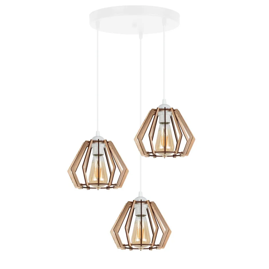 Tipp: Deko-Leuchtmittel machen die Hängeleuchte besonders dekorativ Entdecke die skandinavische Pendelleuchte REPIX – ein stilvolles Highlight für dein Zuhause! Mit ihrem minimalistischen Design aus hochwertigem Metall und Sperrholz in strahlendem Weiß bringt diese Leuchte nicht nur Licht, sondern auch eine warme Wohnlichkeit in jeden Raum. Ob über dem Esstisch im Wohnzimmer, im Esszimmer oder im Arbeitszimmer – die REPIX Pendelleuchte setzt überall Akzente und sorgt für eine einladende Atmosphäre. Die offenen Holz-Schirme dieser Hängelampe sind nicht nur ein echter Blickfang, sondern ermöglichen auch eine individuelle Lichtgestaltung. Du hast die Freiheit, die Helligkeit und Lichtfarbe selbst zu bestimmen, indem du passende Leuchtmittel (3x E27 bis 60W) wählst. Besonders dekorativ wirken Deko-Leuchtmittel, die der Pendelleuchte eine persönliche Note verleihen. Mit einem Durchmesser von 205 mm und einer höhenverstellbaren Hängtiefe von bis zu 900 mm passt die Leuchte perfekt in Räume mit hohen oder niedrigen Decken. Technisch überzeugt die REPIX Pendelleuchte mit einer IP20-Klassifizierung, die sie ideal für den Innenbereich macht. Die selbsttragende Kabelaufhängung und der bauchig verjüngte Schirm sorgen für eine harmonische Optik und Funktionalität. Diese Pendelleuchte ist nicht nur eine praktische Lichtquelle, sondern auch ein stilvolles Designelement, das skandinavisches Flair in dein Zuhause bringt. Fazit: Die skandinavische Pendelleuchte REPIX vereint Funktionalität und Ästhetik auf perfekte Weise. Sie ist die ideale Wahl für alle, die Wert auf Qualität, Design und individuelle Lichtgestaltung legen. Hol dir jetzt diese stilvolle Hängelampe und verwandle dein Zuhause in eine Wohlfühloase!