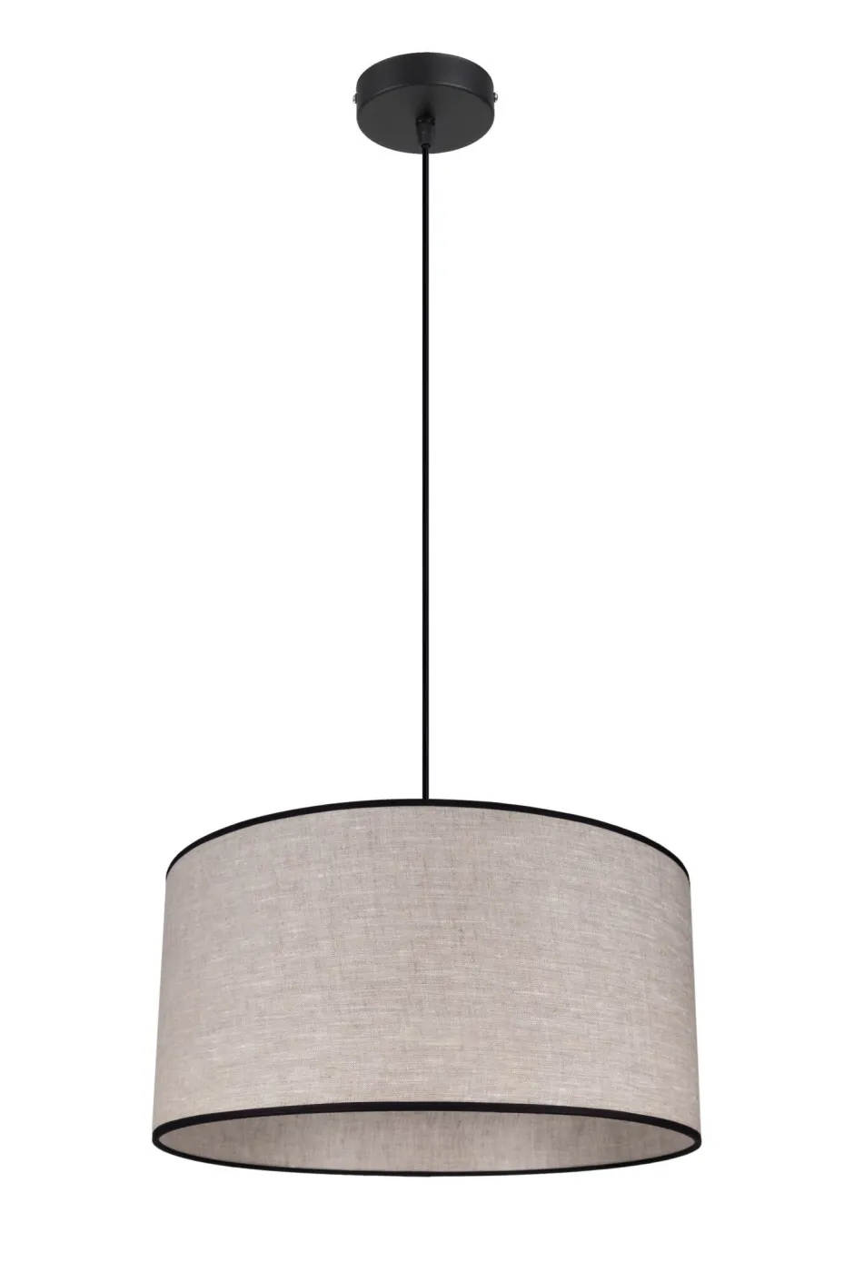 Moderne Pendelleuchte aus Metall und Stoff in Schwarz und Beige