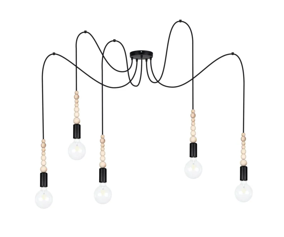 Qualität Made in EU Entdecke die Spider Hängelampe TRUILI – ein Meisterwerk aus Metall und Holz, das deinem Wohn- oder Esszimmer einen einzigartigen Charakter verleiht. Mit einer beeindruckenden Länge von 2000 mm und einer Höhe von 4000 mm ist diese Pendelleuchte nicht nur ein Lichtspender, sondern auch ein stilvolles Designelement. Die Kombination aus schwarzem Metall und natürlichen Holzkügelchen sorgt für einen harmonischen Kontrast, der sowohl skandinavisches Flair als auch einen Hauch von Retro-Charme in deine Räume bringt. Die TRUILI Hängelampe ist mit extrem langen Flexkabeln ausgestattet, die dir maximale Flexibilität bei der Montage bieten. Du kannst die Lampe individuell an der Decke befestigen und so die perfekte Lichtstimmung für jeden Anlass schaffen. Ob beim gemütlichen Abendessen am Esstisch oder beim entspannten Lesen im Wohnzimmer – die Möglichkeit, bis zu fünf E27 Leuchtmittel (max. 60W) zu verwenden, eröffnet dir zahlreiche Optionen, um die Atmosphäre nach deinen Wünschen zu gestalten. Mit einem IP-Schutz von IP20 ist die Lampe ideal für den Innenbereich geeignet und überzeugt durch ihre Qualität, die in der EU gefertigt wird. Die schirmlose Bauweise lässt die eingesetzten Leuchtmittel zum Blickfang werden und macht die TRUILI zu einer der gefragtesten Pendelleuchten für Esszimmer und Wohnzimmer. Setze auf Stil und Funktionalität mit der Spider Hängelampe TRUILI – eine perfekte Wahl für alle, die Wert auf Design und Qualität legen. Lass dich von der Kombination aus Holz und Metall inspirieren und bringe ein Stück zeitloser Eleganz in dein Zuhause.