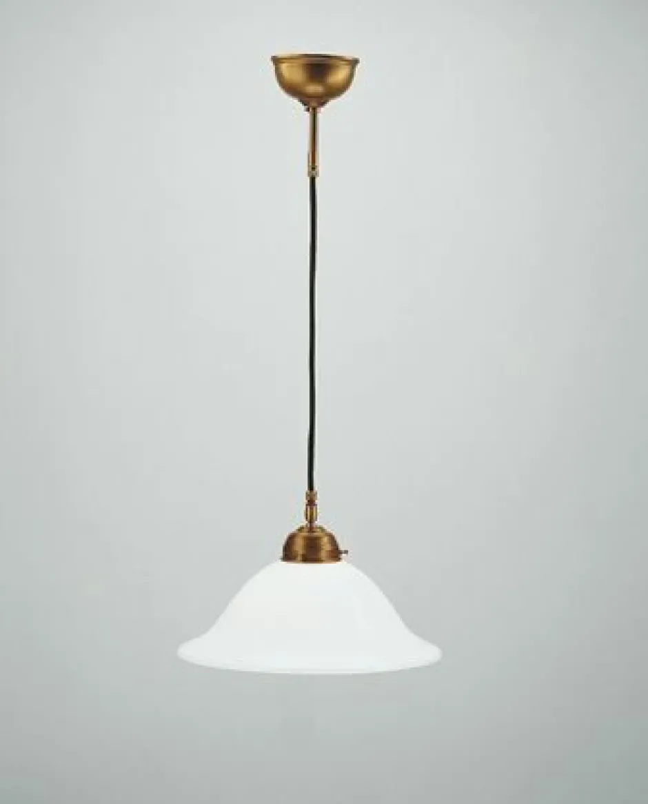Jugendstil Hängelampe aus Messing und Glas