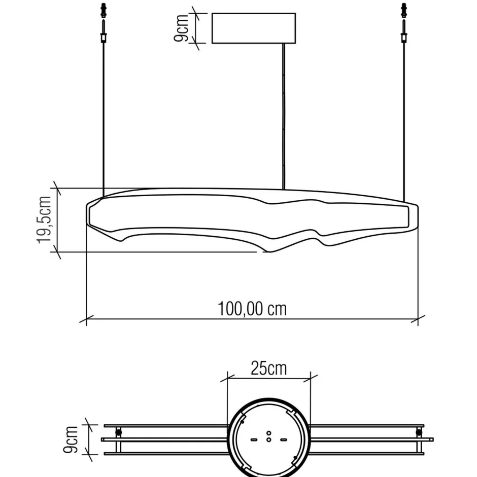 | Maße: | Breite: 90 mm | Hängetiefe: 565-3265 mm | Länge: 1000 mm | Höhe Schirm: 195 mm |