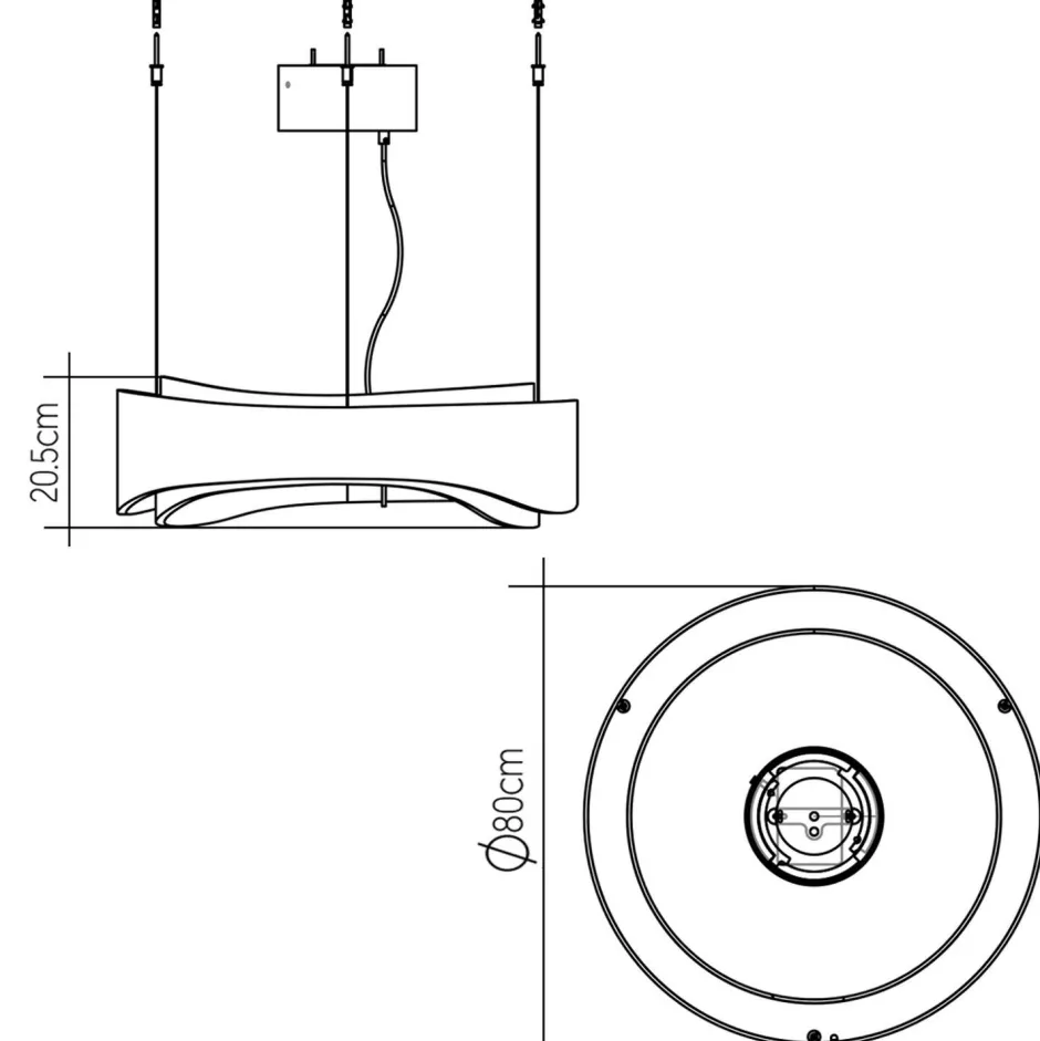 | Maße: | Breite: 800 mm | Hängetiefe: 595-3195 mm | Länge: 800 mm | Durchmesser: 800 mm | Höhe Schirm: 205 mm |