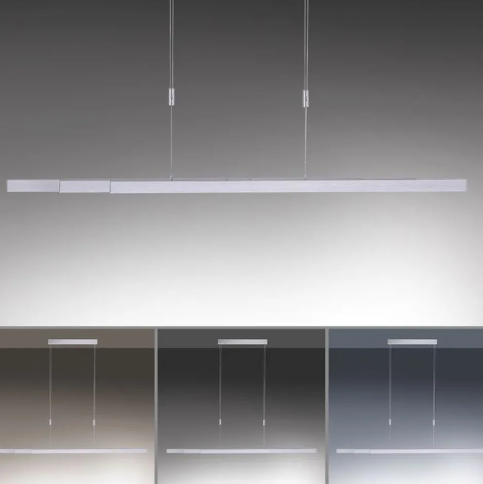 Das längliche Design der Pendelleuchte sorgt für ein stilvolles Ambiente in Wohnzimmer, Esszimmer und Küche über dem Esstisch