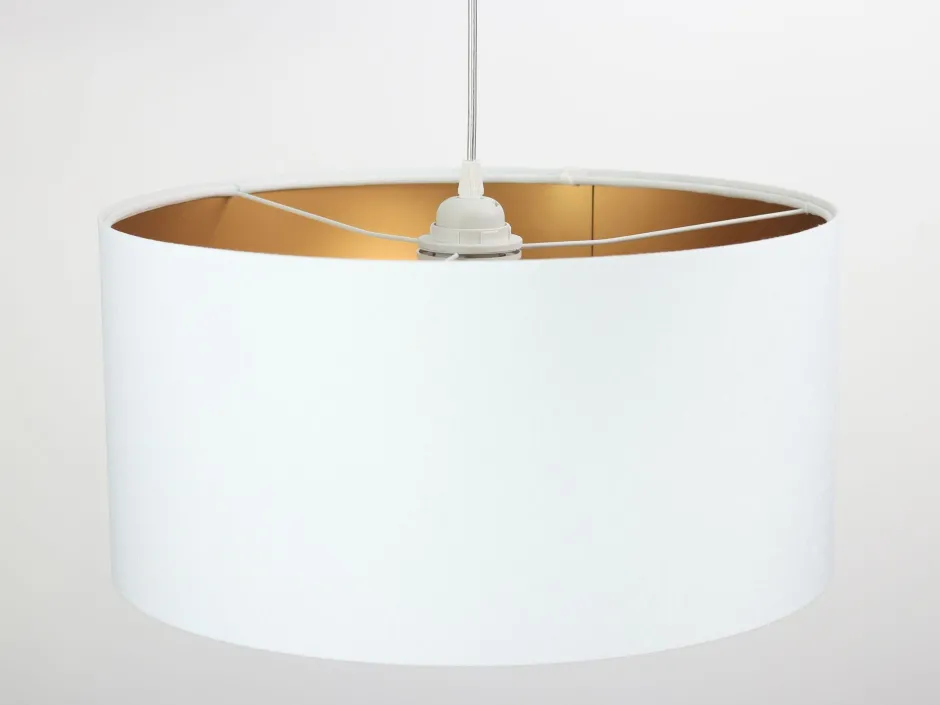 Das Licht scheint auf die in Gold gehaltene Innenseite des Schirms, was für eine schimmernde Lichtwirkung sorgt