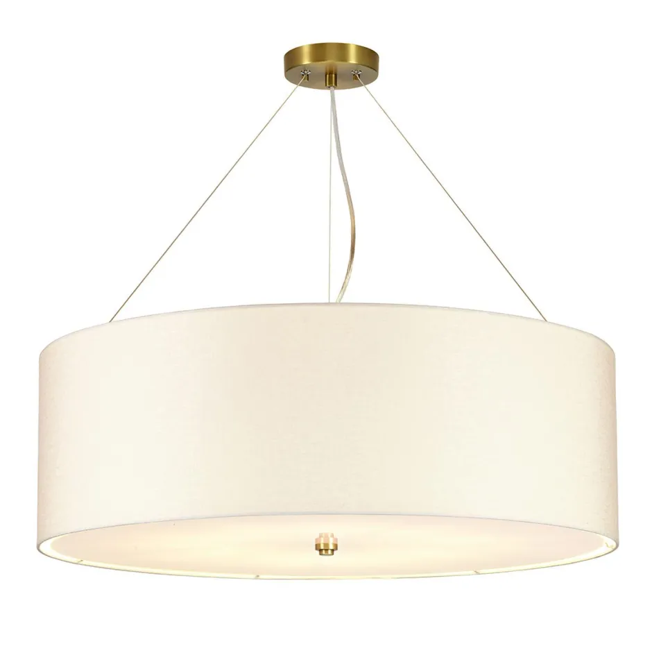 Runde Hängeleuchte mit Stoffschirm in Creme und Messing