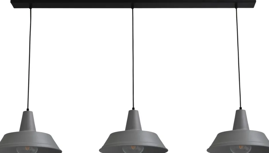 Der flache Schirm in der Trendfarbe Grau ist besonders gut für niedrige Räume geeignet