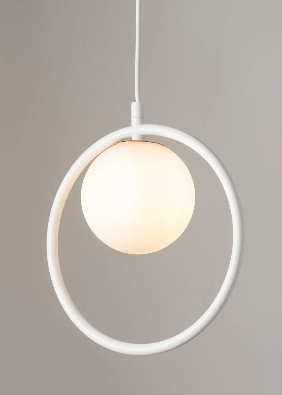Der Kugelschirm aus satiniertem Glas streut das Licht blendarm für ein wohnliches Ambiente Zuhause