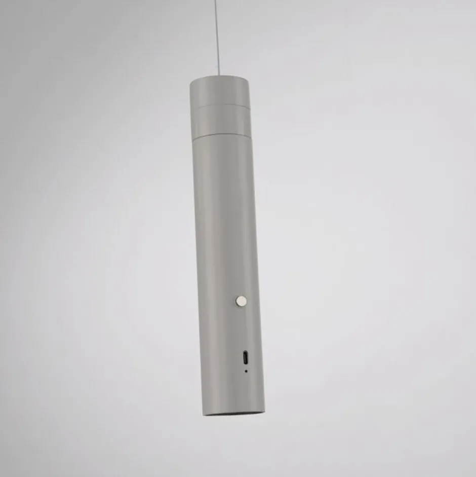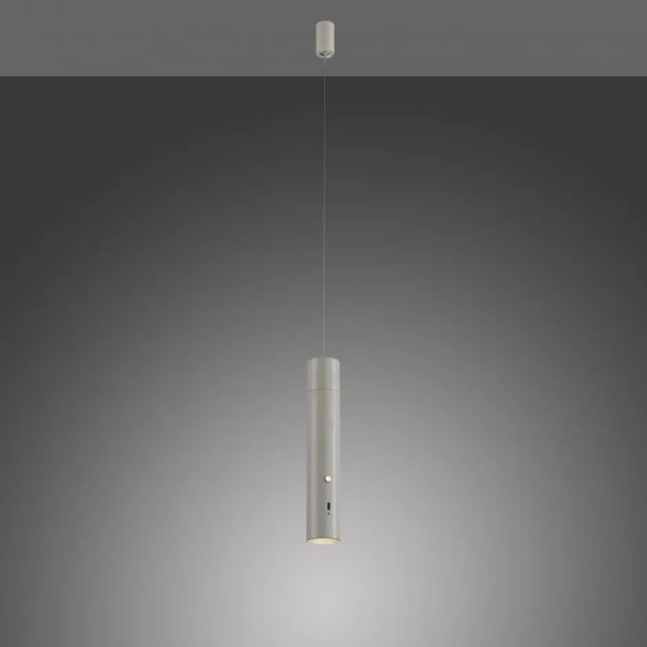 Moderne LED Akku Pendelleuchte aus Metall in Greige