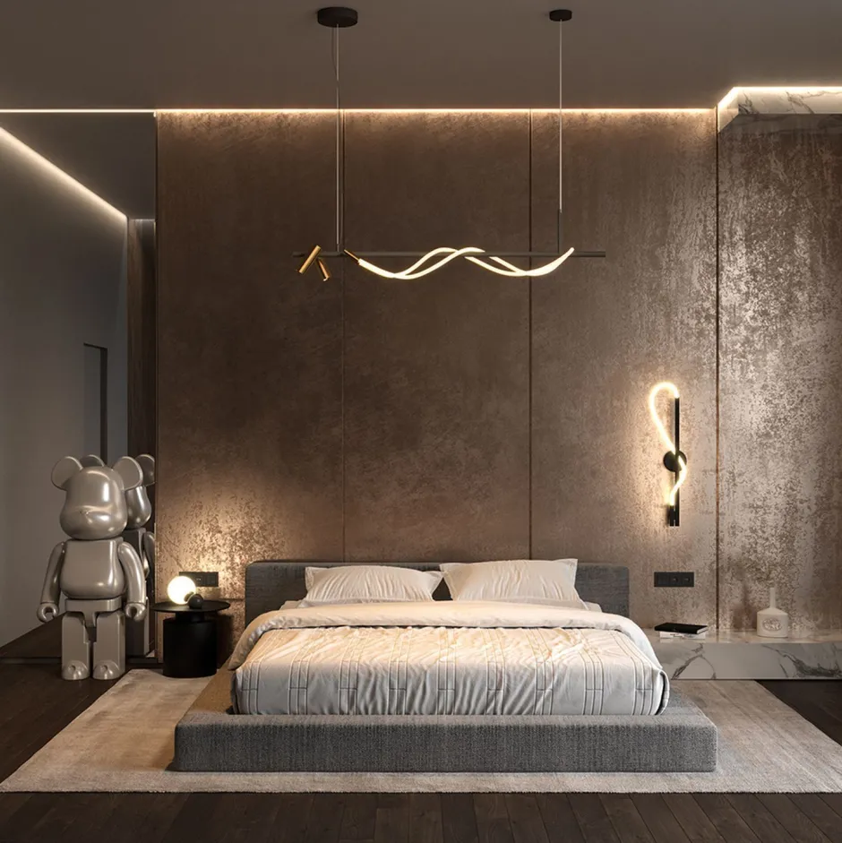 Der geschwungene Lichtschlauch verleiht der Hängelampe einen einzigartigen Look, der sie zu einem dekorativen Blickfang in jedem Raum macht