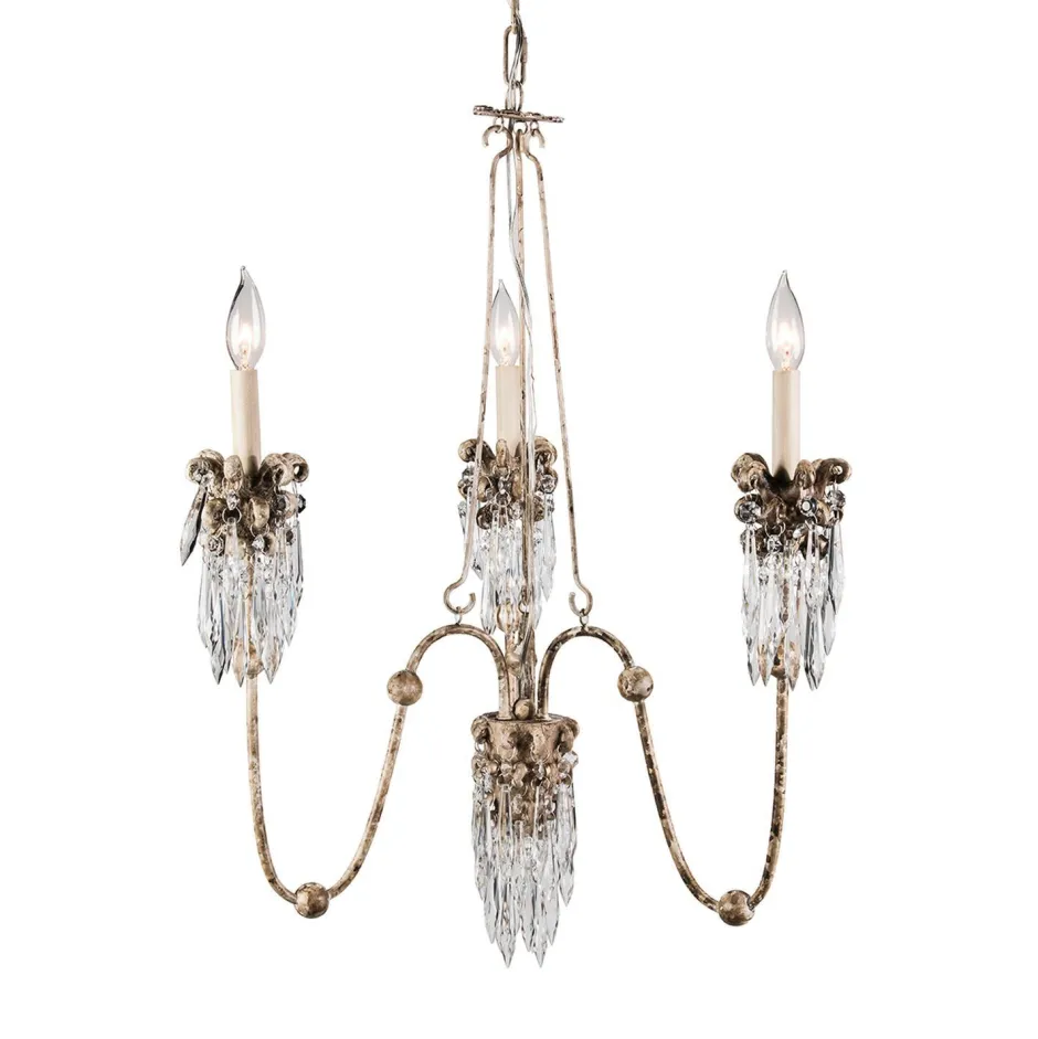 Opulenter kleiner Kronleuchter mit Kristallen und kunstvollen Details für Wohnzimmer und Esszimmer