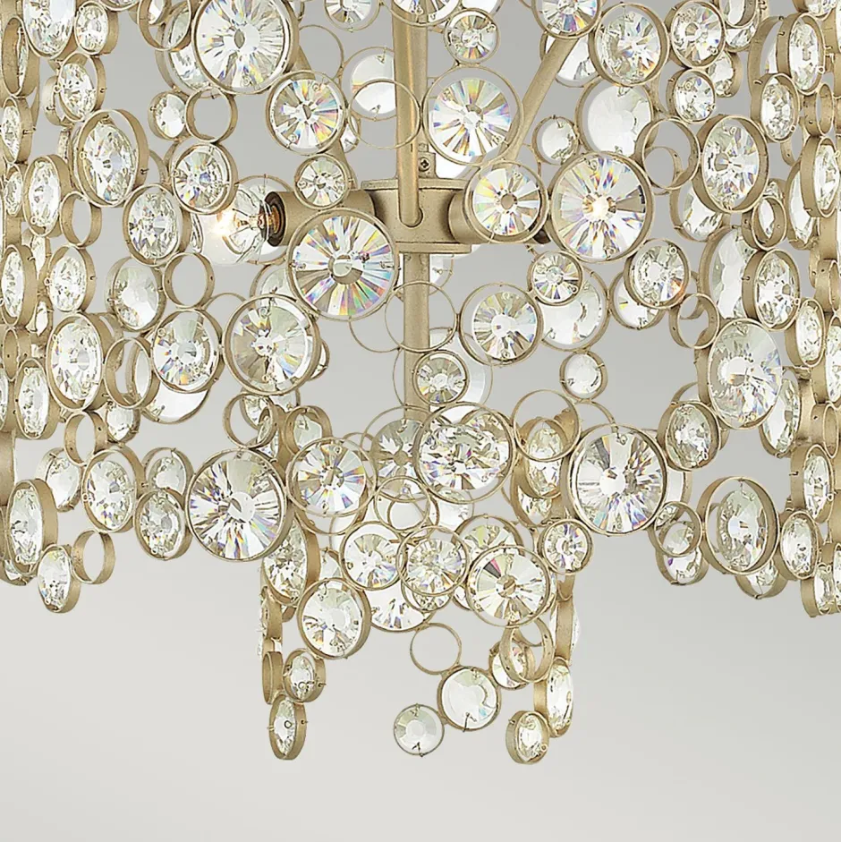 Eine Vielzahl an geschliffenen Kristallen setzen einen dekorativen Akzent und machen aus der Hängelampe einen außergewöhnlichen Lichtbringer