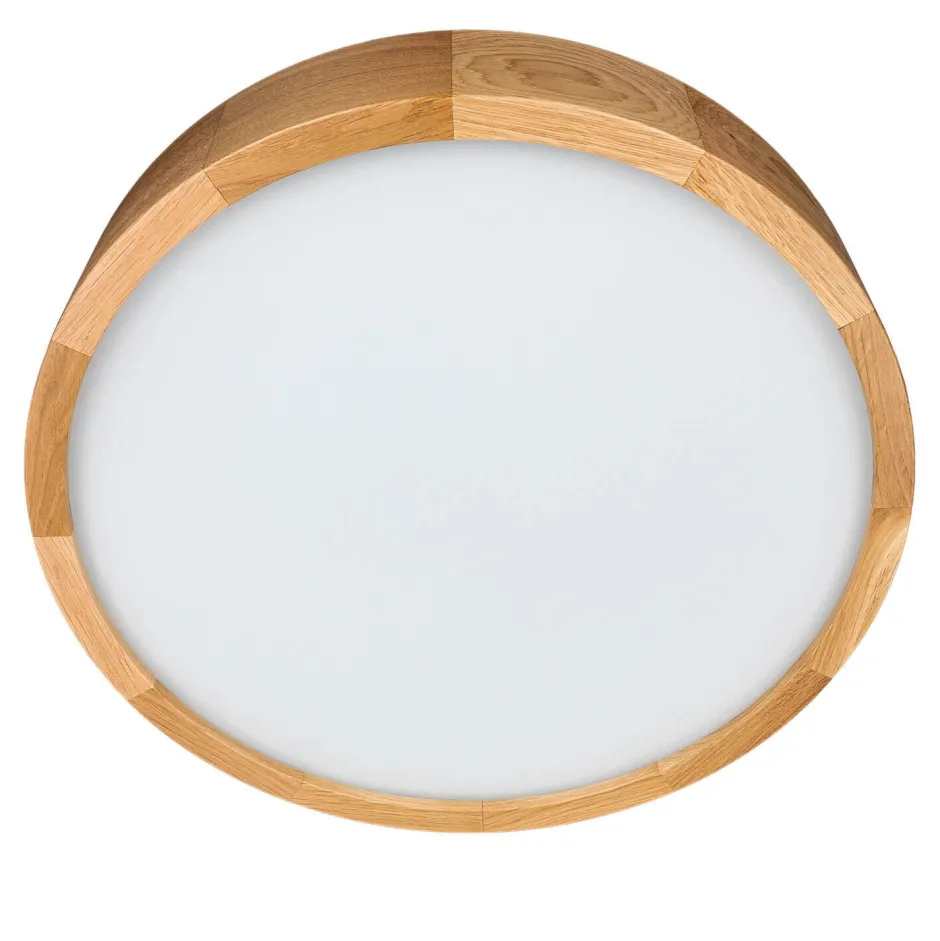 Runde LED Deckenleuchte aus Holz und Glas