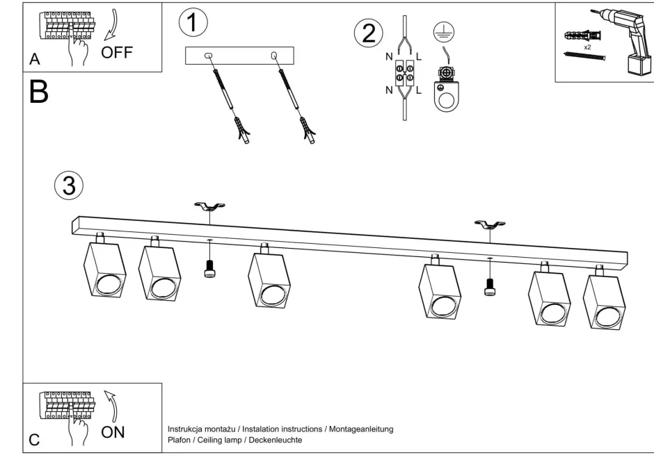 Die Deckenleuchte erlaubt dank der dreh- und schwenkbaren Schirme eine zielgerichtete Beleuchtung und passt ideal in Wohnzimmer, Küche und Flur