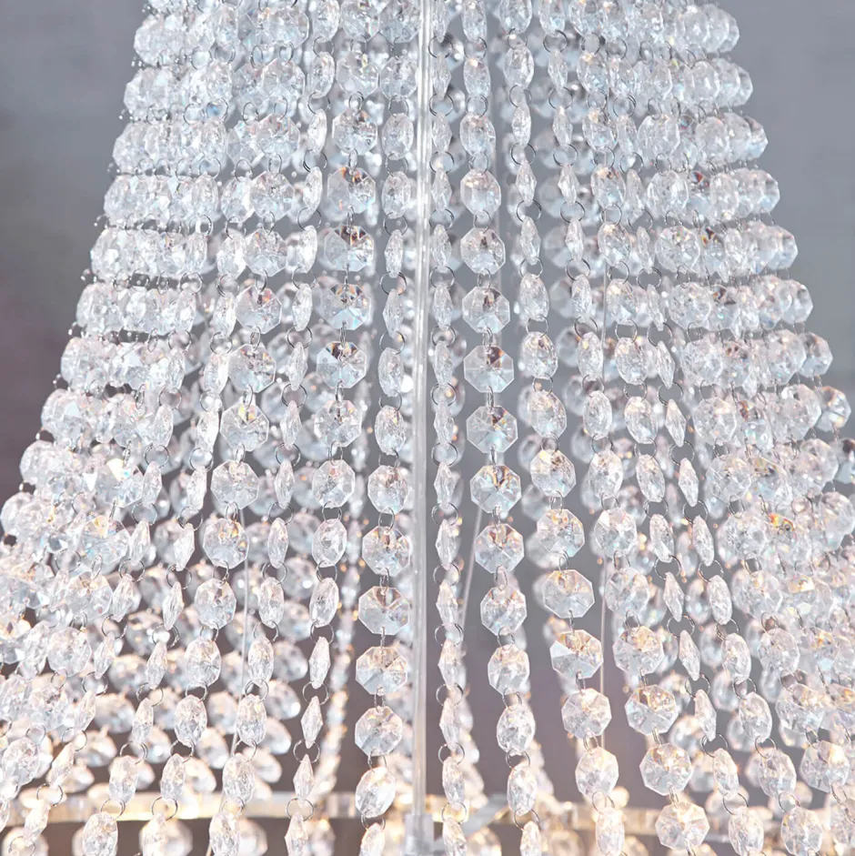 Imposanter Kronleuchter aus kleinen Kunststoff-Kristallen, die filigran verbunden wurden