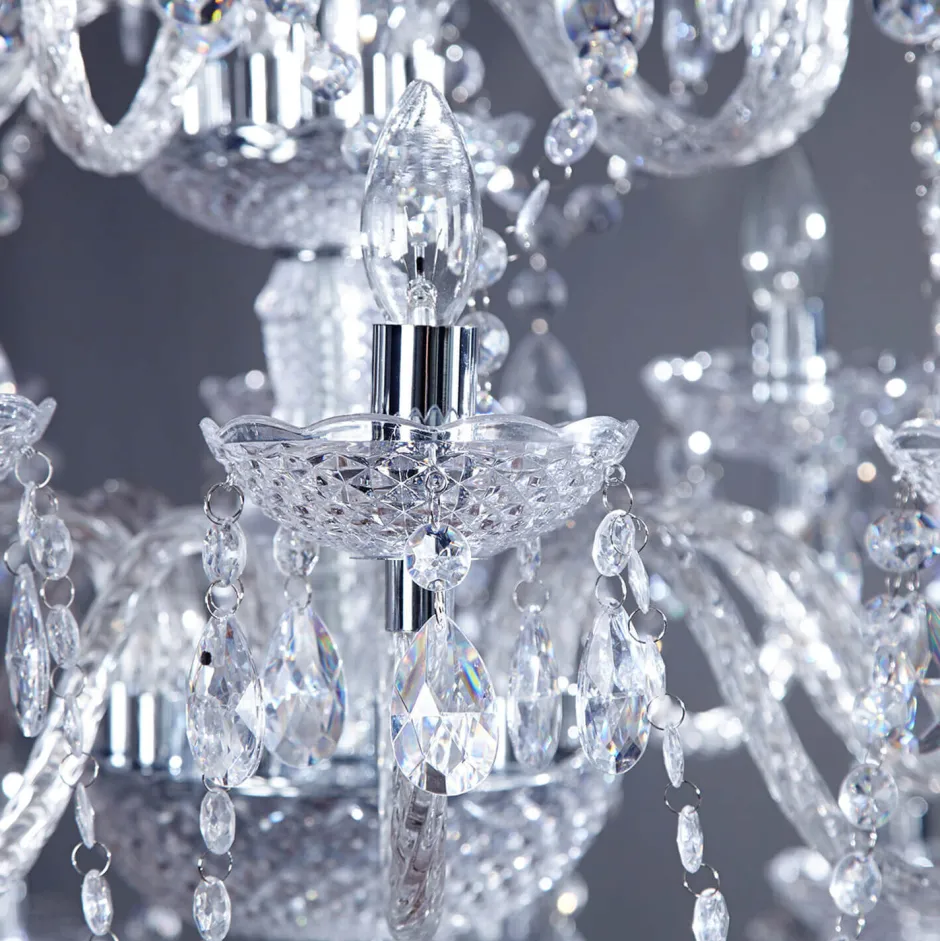 Prächtige Kristall-Applikationen aus Acryl, die das Licht brechen und den Kronleuchter funkeln lassen
